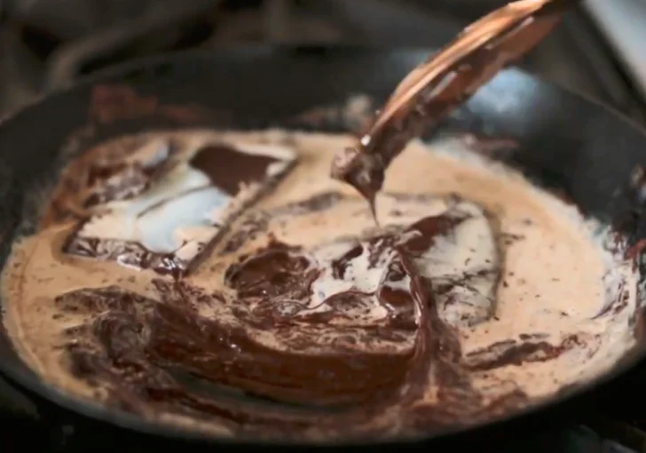 - Melt Chocolate with Cream: Heat dark chocolate and heavy cream in a skillet over medium-high heat, then turn off the heat and let it sit before stirring into a smooth, glossy mixture.