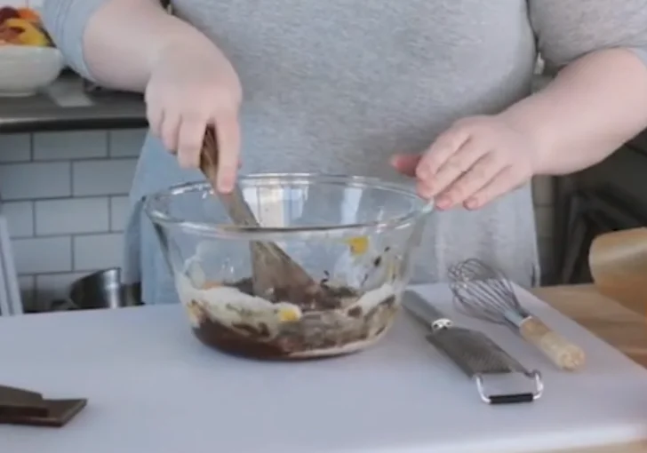 Add the melted chocolate mixture into the bowl. Stir until fully combined and smooth.