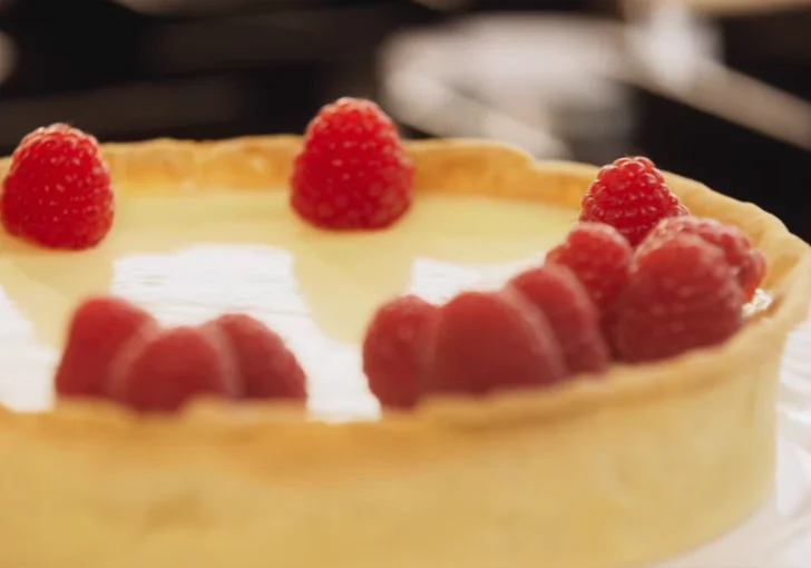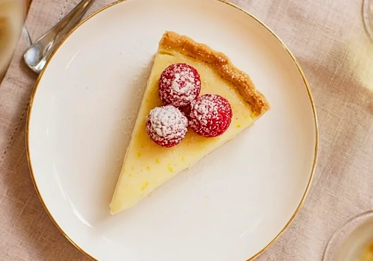 - Finish and serve Once fully set, remove the tart from the tin carefully. Decorate the top with fresh raspberries for a bright, sweet contrast. Slice and serve chilled.