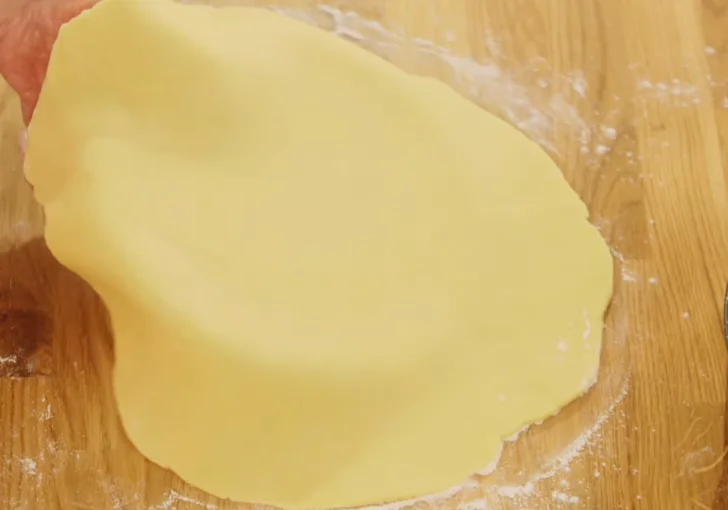 - Prepare and line the tart tin Roll out the shortcrust pastry on a lightly floured surface until large enough to line a tart tin. If handling feels tricky, slide the base of the tart tin underneath the rolled pastry and use it to help lift and position it neatly into the tin. Gently lift and press the pastry into the edges, ensuring it fits snugly without stretching or tearing.