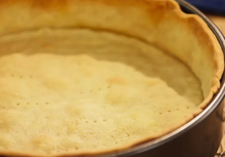 - Prick and blind bake the pastry Prick the base of the pastry all over with a fork to prevent it from puffing up during baking. Line with baking paper and fill with baking beans. Bake in a preheated oven at 180°C (160°C fan) for 15 minutes. Remove the beans and paper, then return to the oven for a further 5 minutes until the pastry is pale golden, crisp around the edges, and fully cooked. Set aside to cool completely.