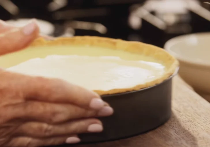 - Fill the tart case Pour the lemon posset mixture into the cooled pastry case, smoothing the surface if needed.