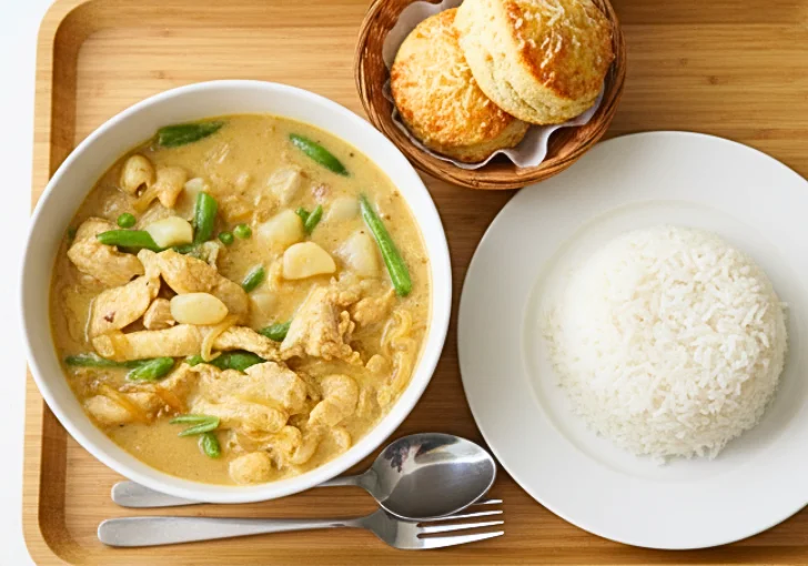 Cheese Scones – Sounds unusual, but a warm cheese scone on the side works surprisingly well. The savory, crumbly texture balances the creamy sauce and makes the meal feel a bit different from the usual rice pairing.