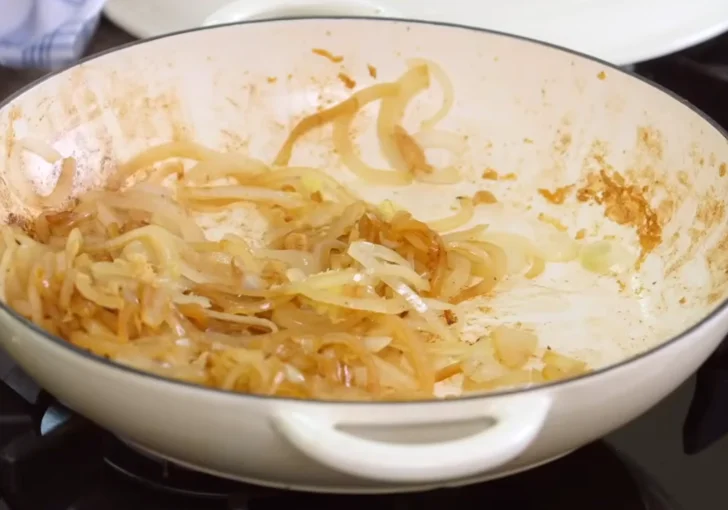- Soften the onions: In the same pan, add the sliced onions, cover with a lid, reduce the heat, and allow them to cook gently in their own steam for about 10 minutes until very soft and tender.